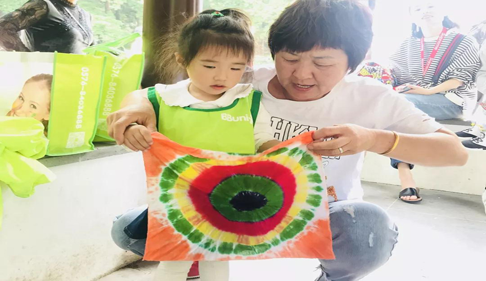 丰富多彩的图画就像一座奇妙的美术馆,亲子扎染的过程中,不仅可以让亲子关系更亲密,还能打开孩子对世界的认知大门,感知更多的真善美。