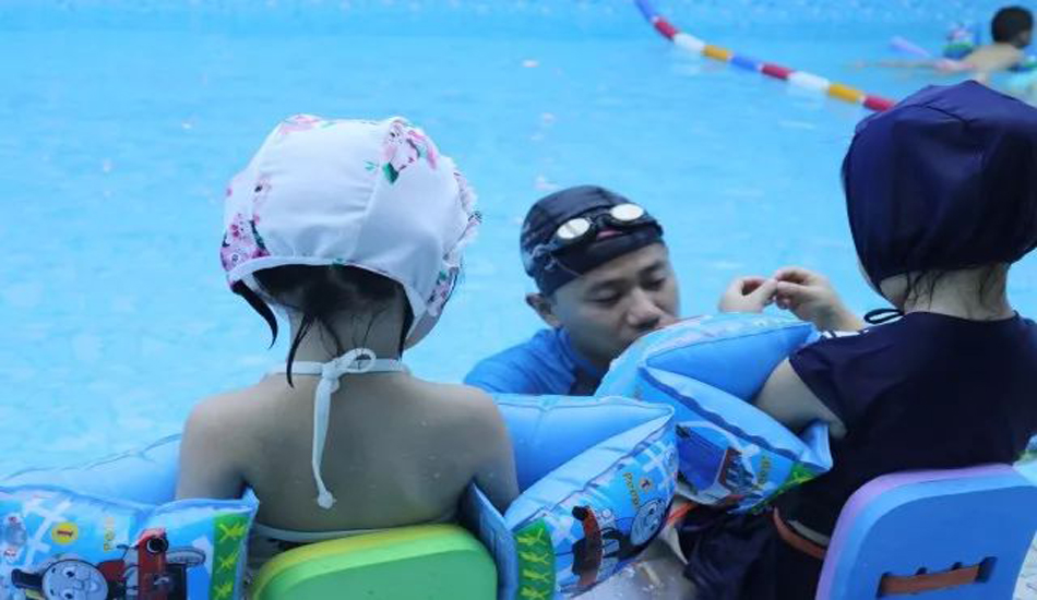 家长们和BBunion的Abby老师在旁边一直给宝宝们加油打气,帮助宝宝克服下水前的恐惧。